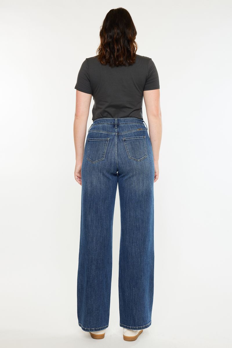 Get ready to elevate your style with our Viola High Rise Wide Jeans in a curvy shape fit. These trendy jeans feature a flattering fit that sits comfortably at your waist, elongating your legs for a sleek silhouette. With a single button closure, these jeans offer a secure stylish fastening option. Meant to enhance your curves while giving you the ultimate comfort.