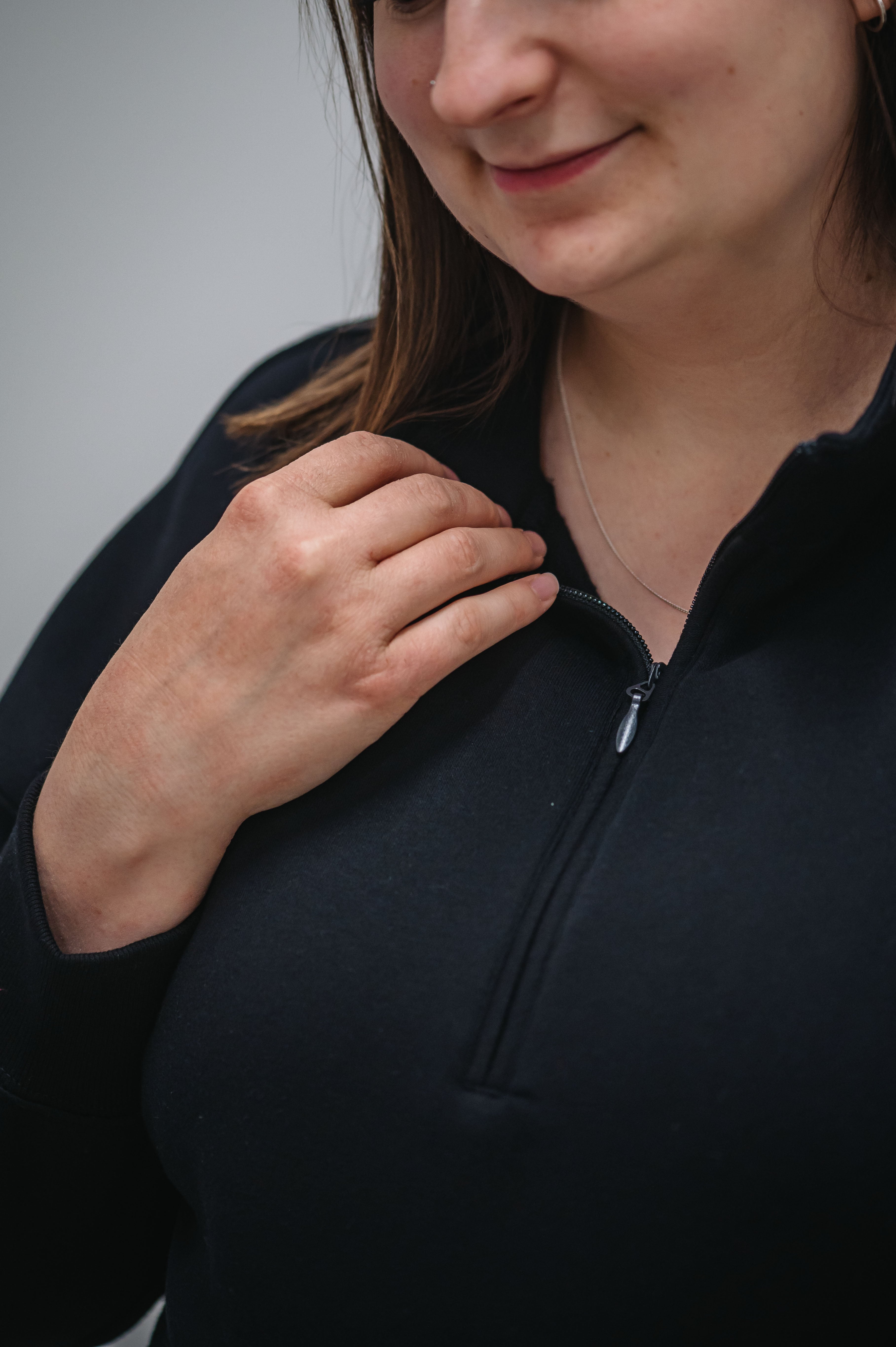 A classic scuba fit and shape that will always be a staple to own. Featuring a funnel style 1/4 zip neckline, structure body, dropped shoulders for a relaxed feel and a warm fabric ideal for cooler days to keep you cozy.