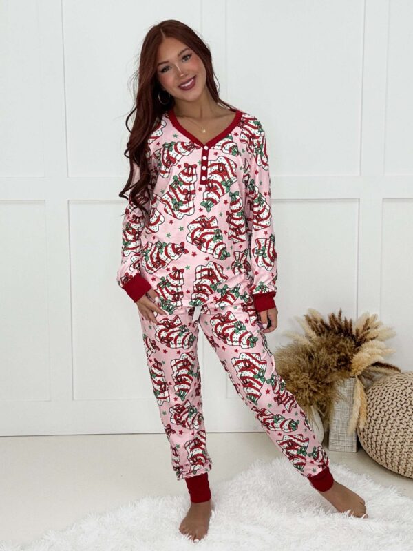Curl up over the holidays with this buttery soft PJ set from Shirley & Stone. This long sleeve shirt and pant combo comes in a gorgeous print, so you'll look cute while you celebrate the holidays in the most relaxed way possible. Featuring a faux button detail, long sleeve top and pants, side pockets, elastic waist with ties and buttery soft fabric.