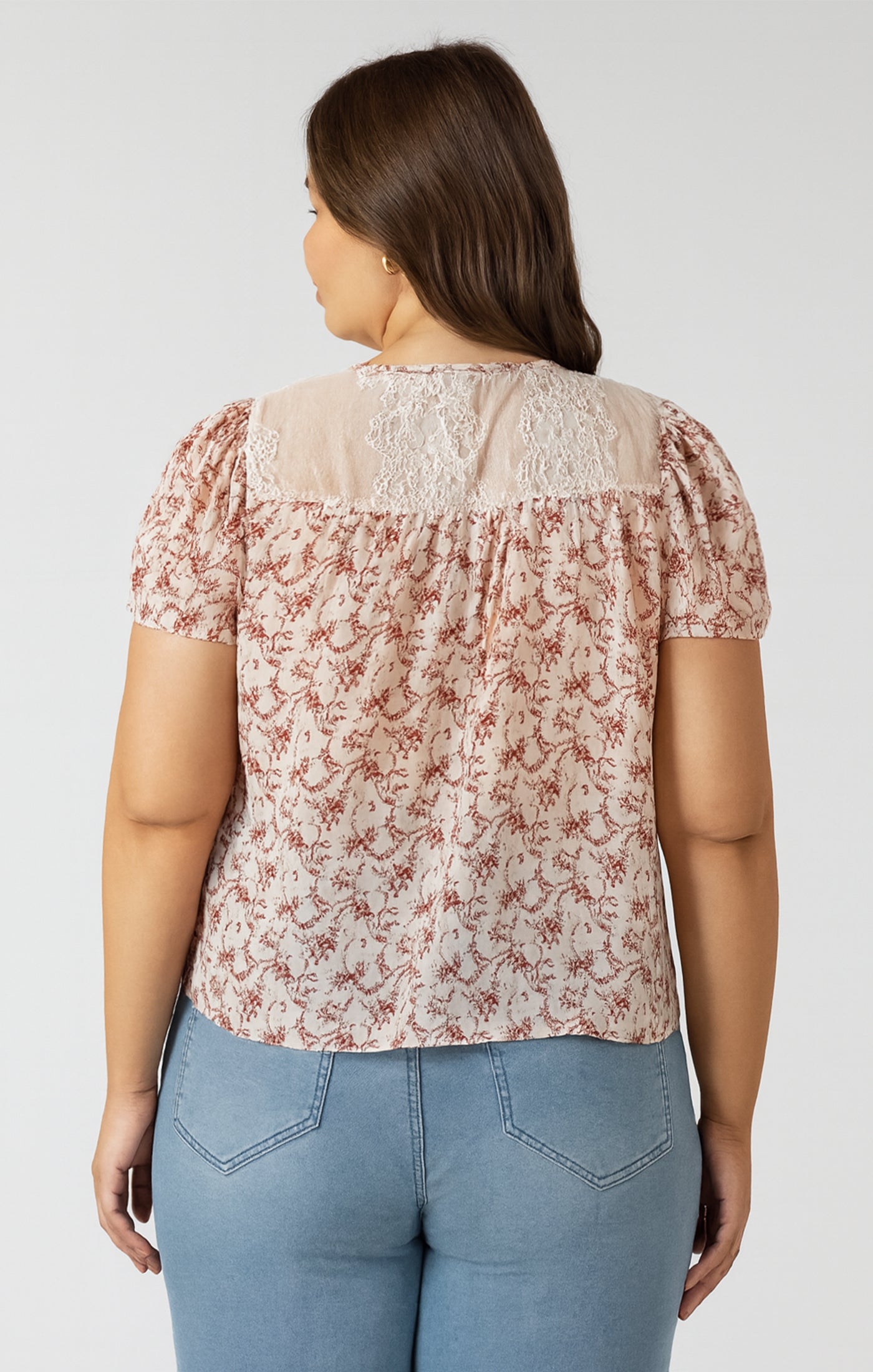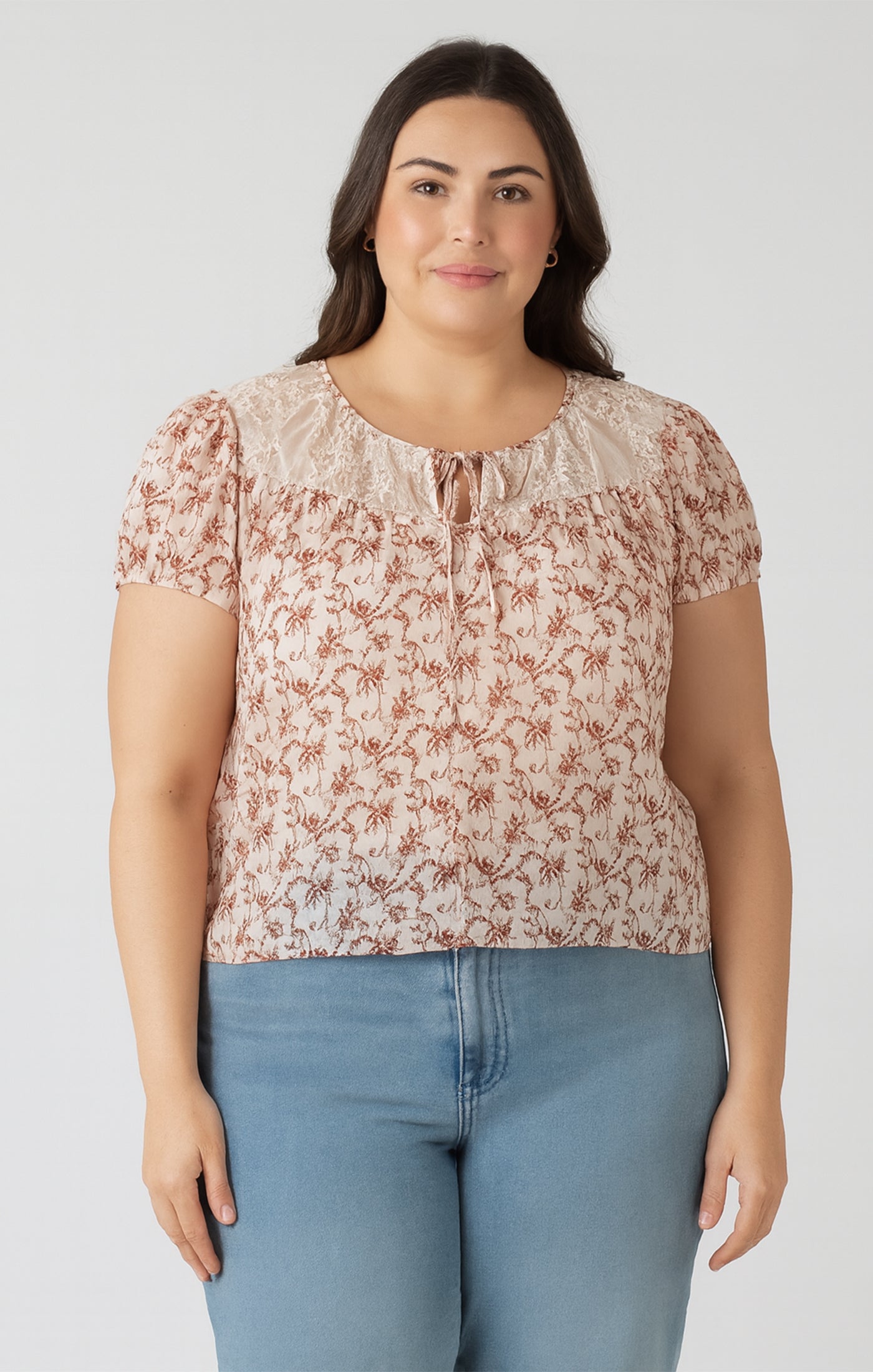Elevate your wardrobe with this floral sheer blouse that is ideal for spring and summer. Featuring a front tie, sheer fabric with lace overlay and a feminine look and feel. Perfect for layering or wearing as a statement piece, this versatile top transitions perfectly from casual outings to special occasions.