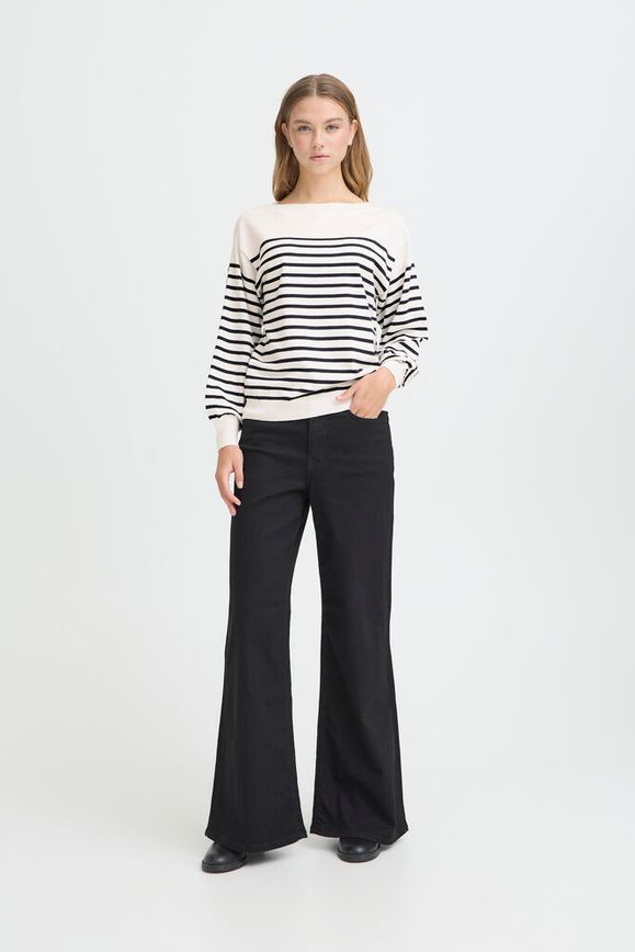 ICHI Luls Boatneck Knit Top || White Stripe
