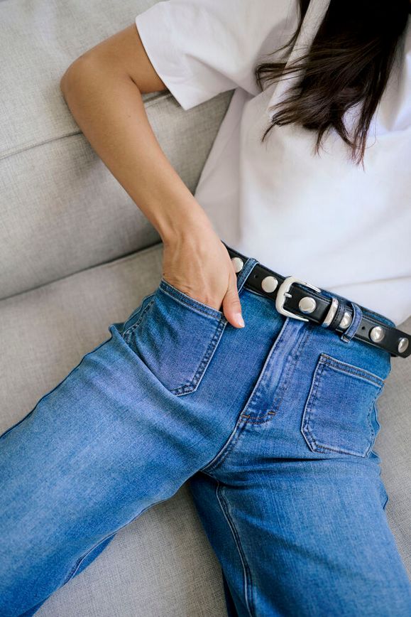 Experience the perfect combination of style and comfort with our Kaffe Brook Denim. Featuring a comfort stretch, high-rise, patchfront pockets, classic medium blue wash, and a flattering wide leg design. Elevate your wardrobe with these must-have jeans.