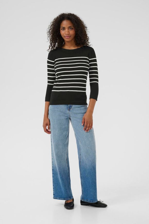 Kaffe Lizza Boatneck Pullover || Black Stripe