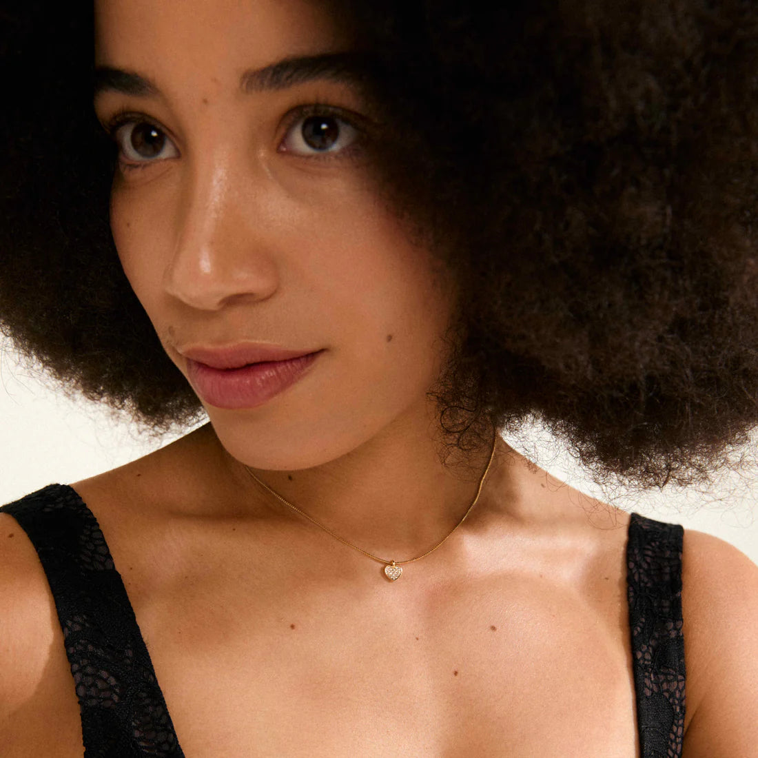 Wear your heart with sparkle! This elegant gold-plated or silver-plated necklace features a petite heart pendant adorned with dazzling Preciosa crystals, adding a touch of romance and sophistication to your look. Ideal for everyday wear or special occasions, providing just the right amount of shine. Wear it solo for an understated statement or layer with other chains for a trendy look. The perfect go-to piece for any occasion! This necklace is crafted from 97% recycled materials, with love for our planet.