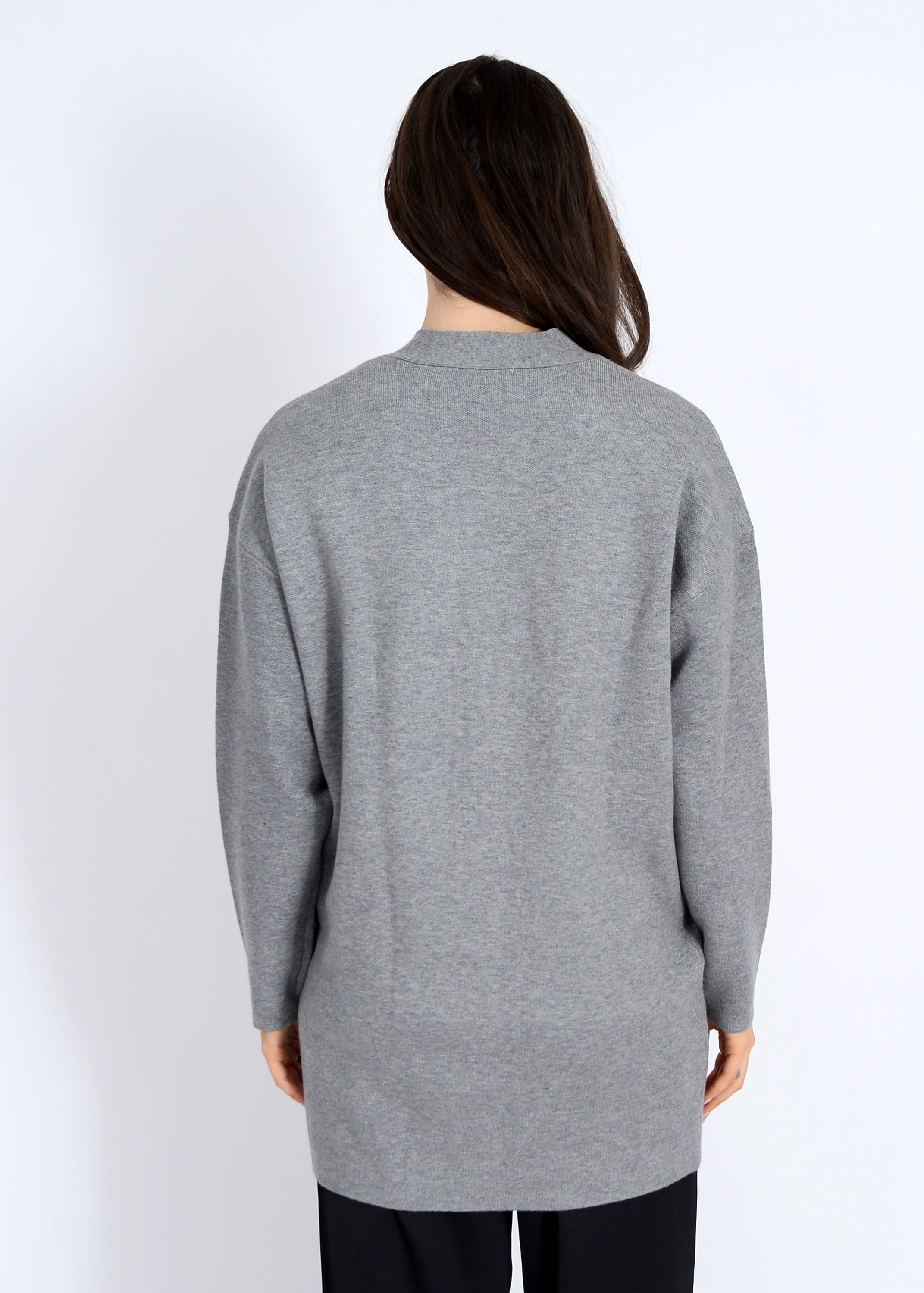 Our Abella Cardigan is done in a classic grey that is always in style. Featuring a tunic length, button front, soft knit fabric and lomg sleeves.