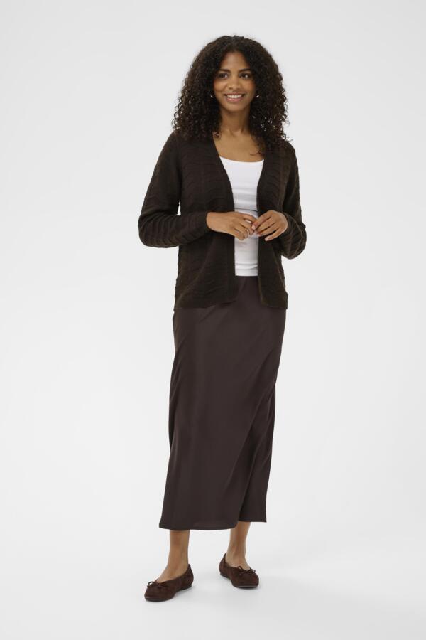 This knitted buttonless cardigan is designed to be worn open, great for an added layer. Wear it over a casual outfit and enjoy a cozy feel. Its knitted, lightweight fabric is perfect for any cold day during the year, no matter the season. The cardigan features midi length, long sleeves and ribbed details.