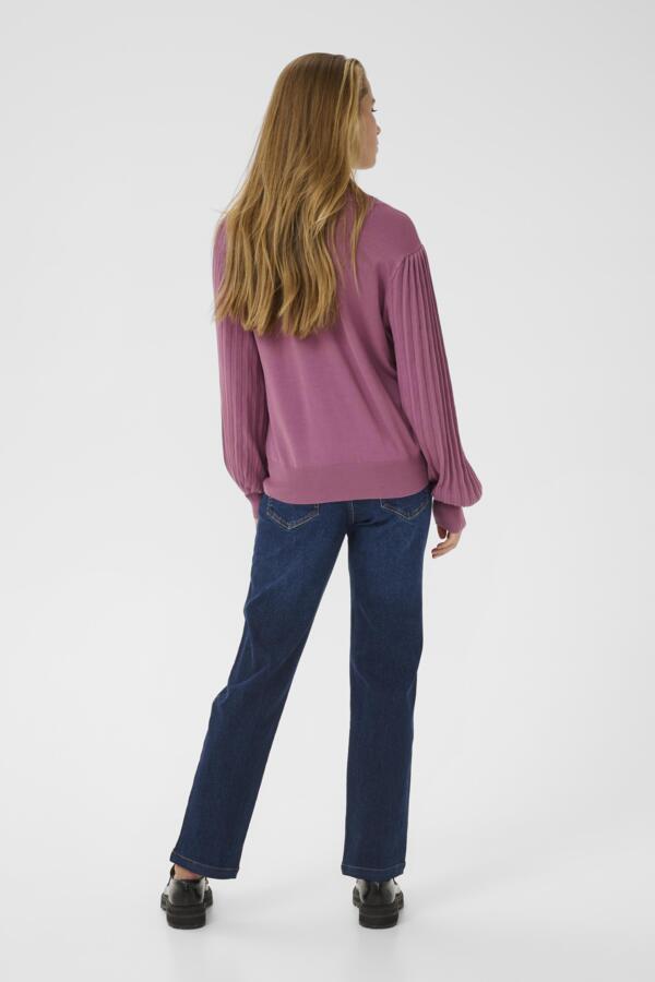The Lone Pullover is a beautiful, knitted pullover that will instantly elevate your look. It has long and voluminous bishop sleeves that are made in a pleated knit fabric. The pullover has a casual fit, and both the sleeves and the body are gathered in a knitted rib edge.