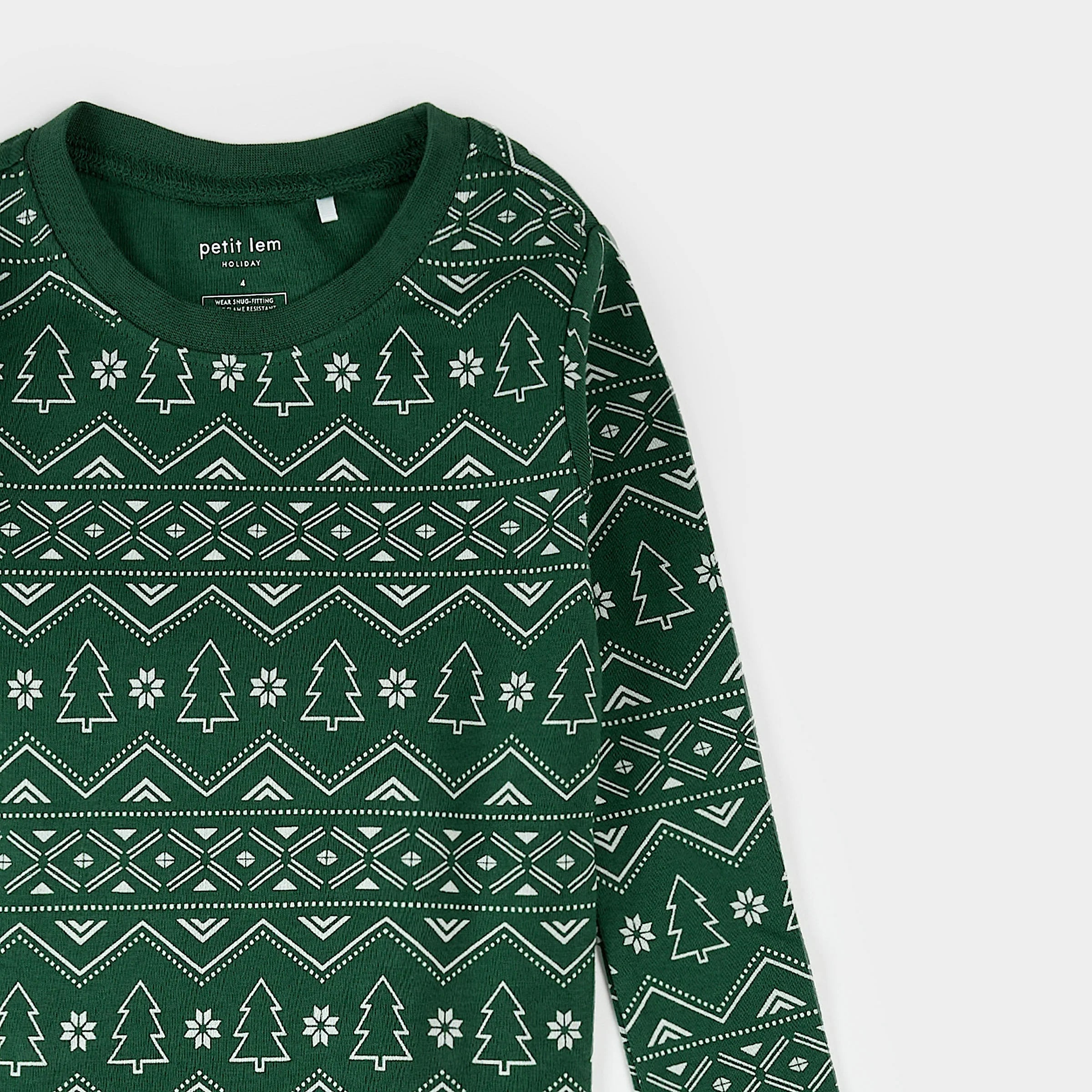Kids Petit Lem Pajamas || Fair Isle Holiday Trees