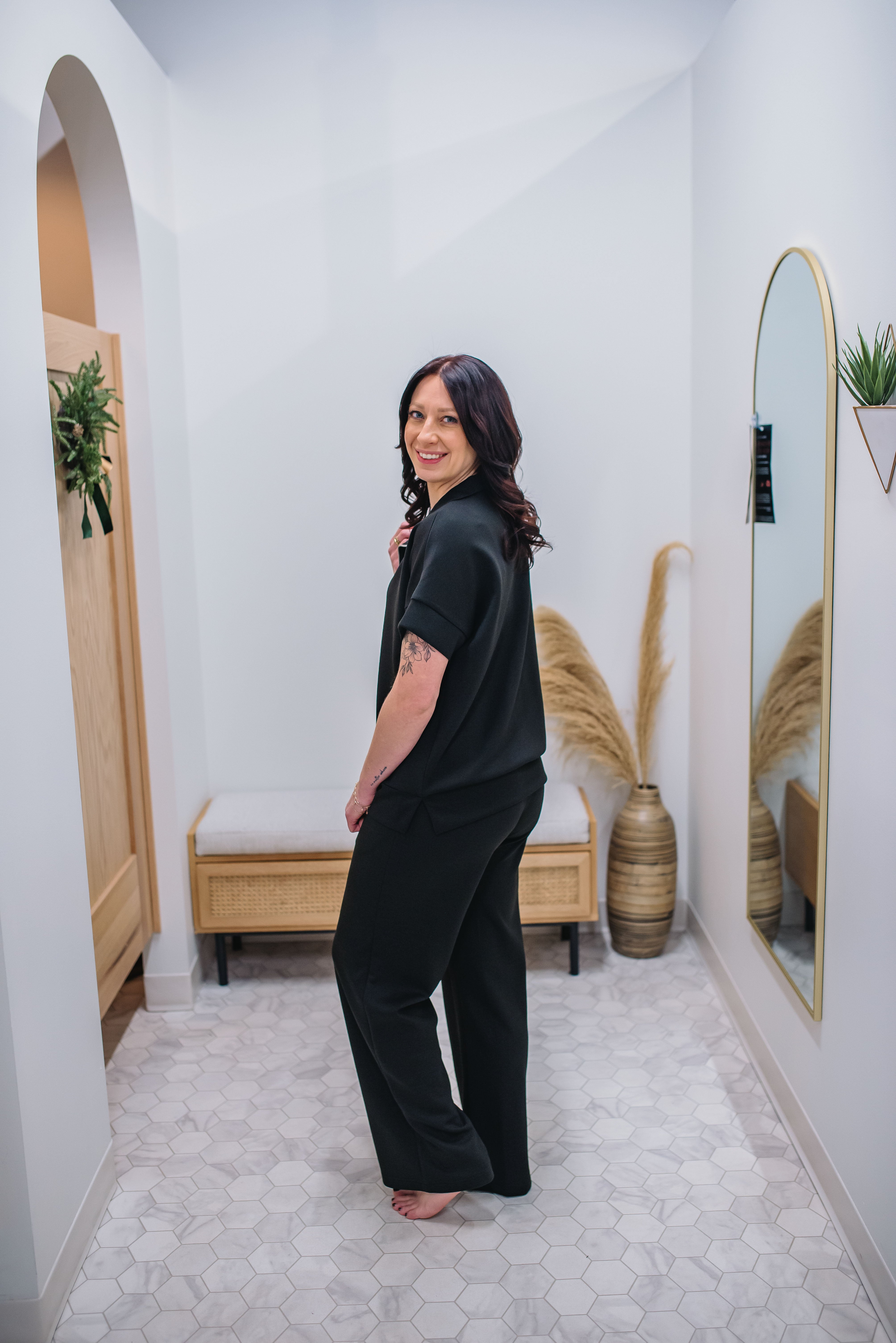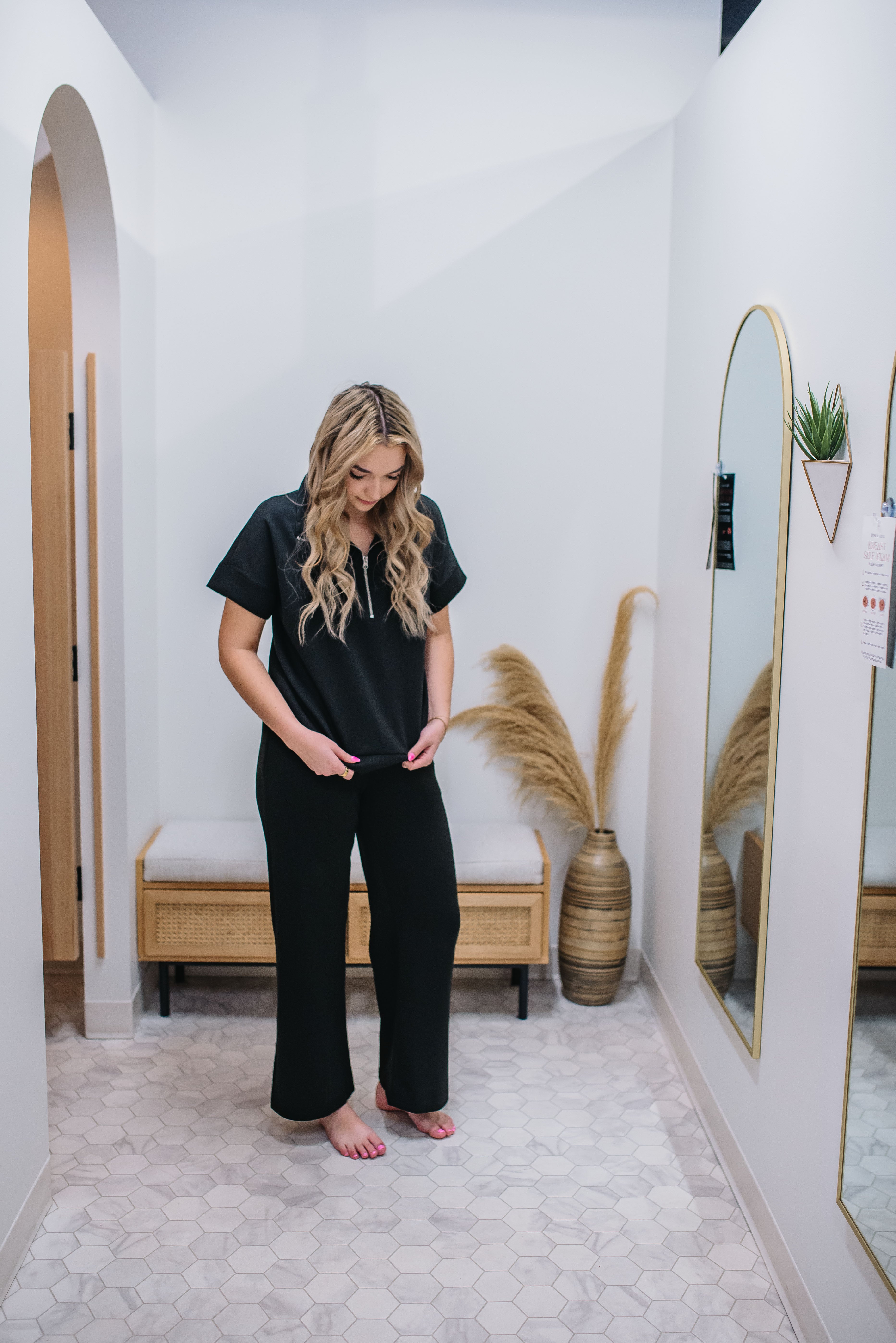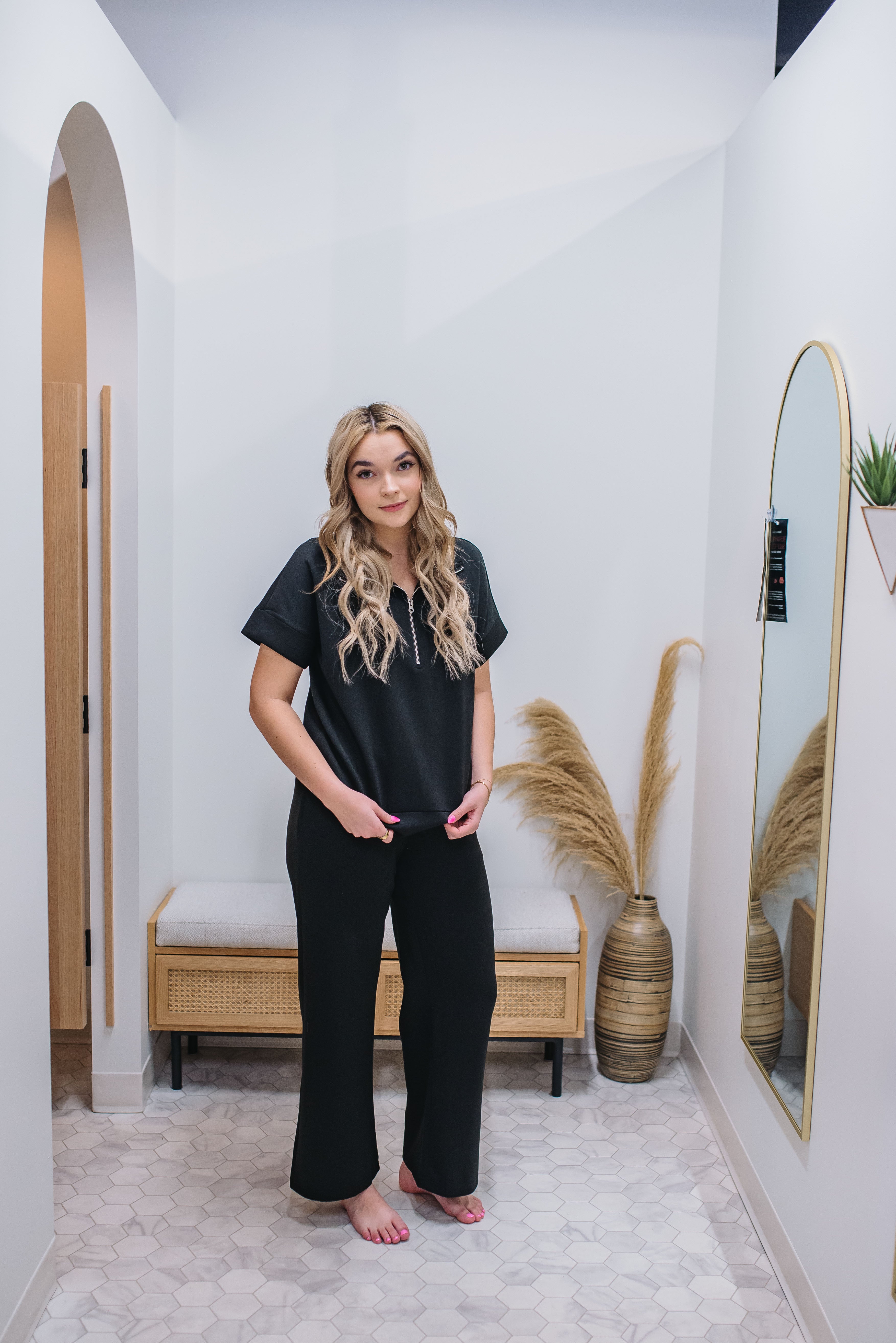 Who doesn't love a set that can be worn together or easy mixed with other pieces in your closet?  These sets feature a short sleeve 1/4 zip top, wide leg pants with an elaticized waistband (hello comfort), buttery soft fabric and side pockets. These set offers a truly effortless look.