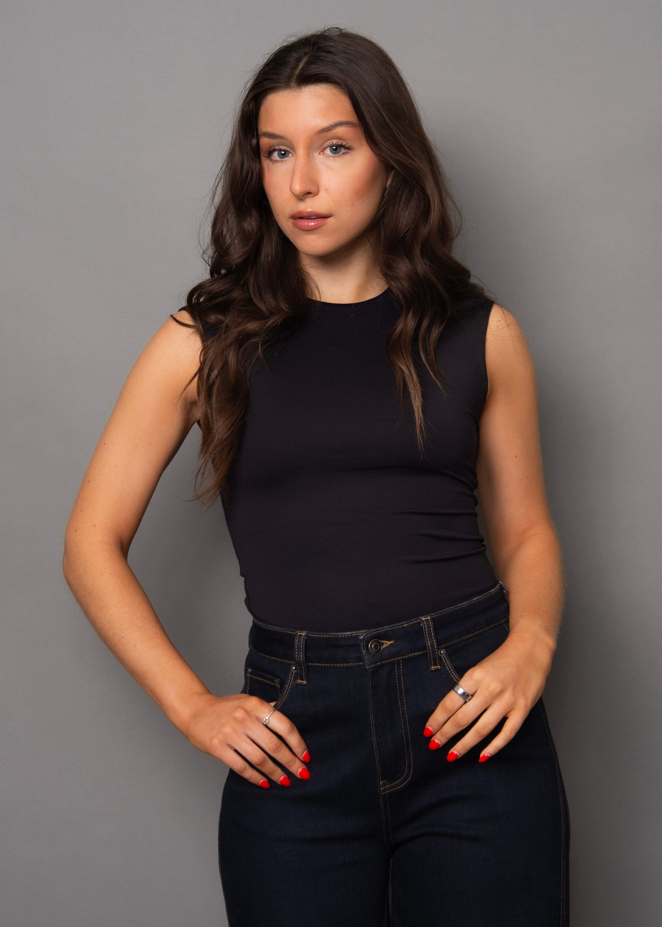 Second Skin by RD Style, your go to for classic basics. This longer length tee features double-layer fabric for a smooth and structured fit, a high crew neckline and is completed in a chic black. Made with RD Style’s signature luxe, ultra-flattering fabric coveted for its smoothing effect and second-skin feel. The Roxi Tank is effortlessly chic and versatile, perfect for wearing on its own.