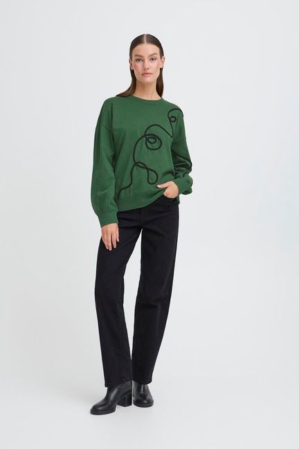 Featuring a minimalist design, this sweatshirt offers a relaxed fit for everyday comfort. The flowing line art adds a touch of modern flair, making it a versatile piece for casual wear.
