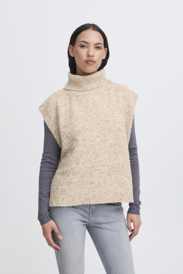 This poncho by ICHI offers exceptional comfort and warmth. Its relaxed fit and roll neck design provide a cozy, stylish silhouette, while functional side splits with buttons allow for easy movement and versatile wear. Perfect for layering, this poncho combines practicality with refined elegance for the modern wardrobe.