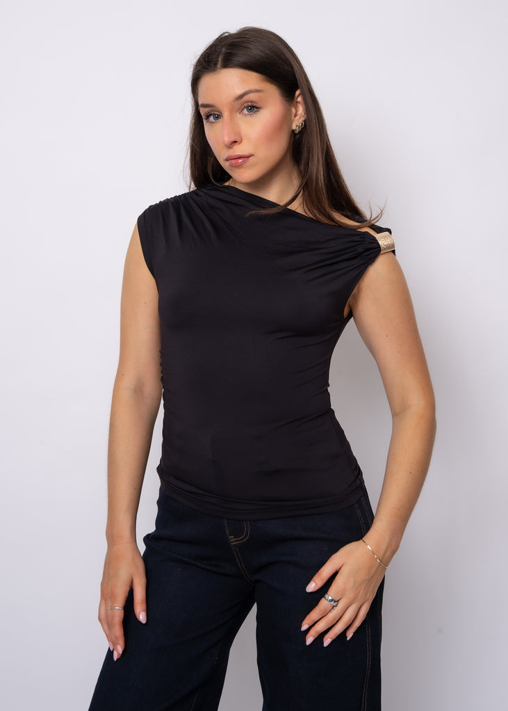Second Skin Damian Asymmertrical Top || Black