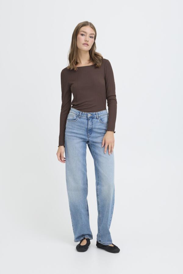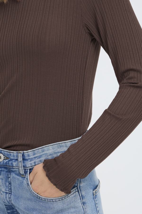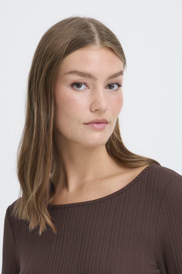 Introducing the ICHI Cella Long Sleeved t-shirt, the perfect blend of comfort and style. Featuring a soft and lightweight feel, boatneck, shaped body, rich coffee bean colour and textured fabric. Upgrade your t-shirt game with this fantastic longsleeve.