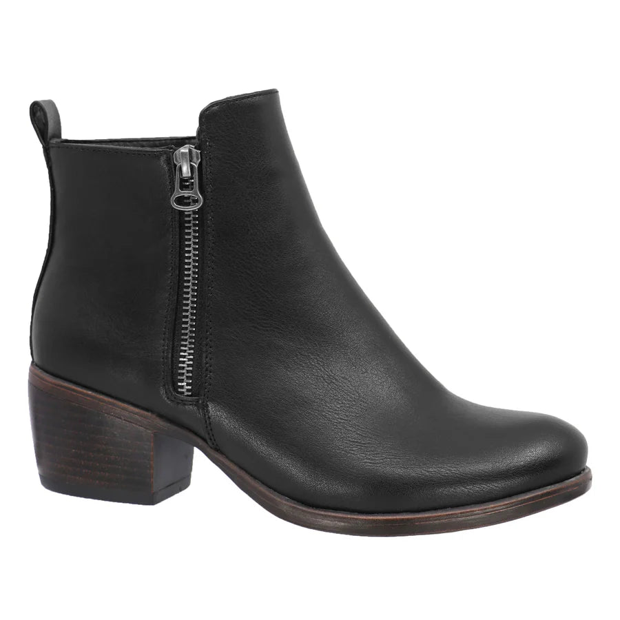 Pair the Kinsley ankle boot with just about anything. They have a comfortable soft sock padding, durable rubber outsole and short faux fur lining making it easy to walk in all day or night with the 1" heel. The functional inside and outside zipper allows the bootie to be taken on and off easily.