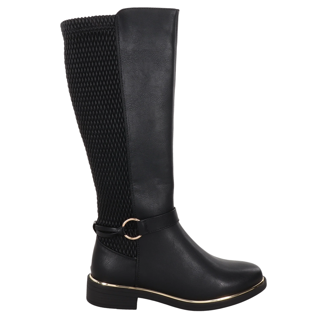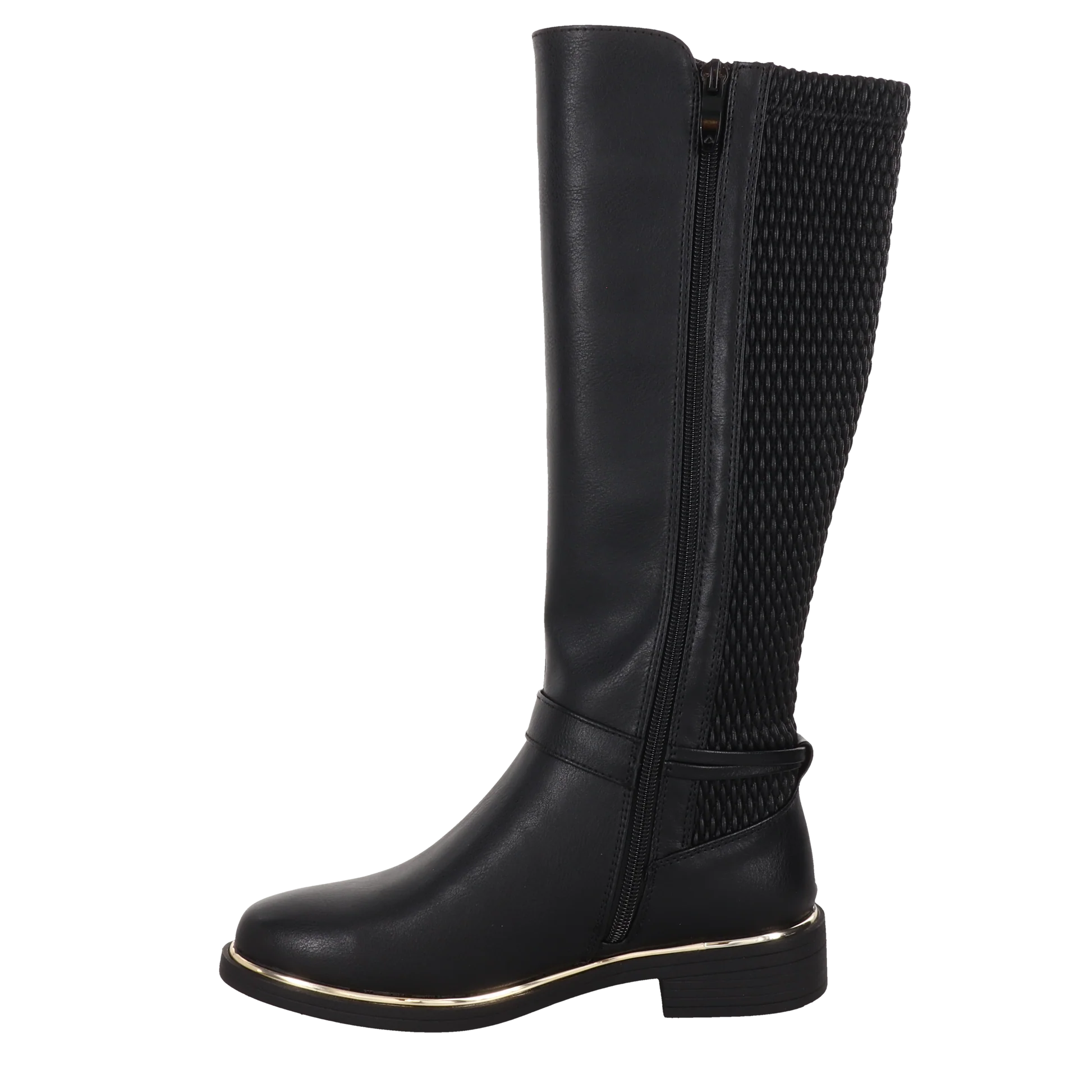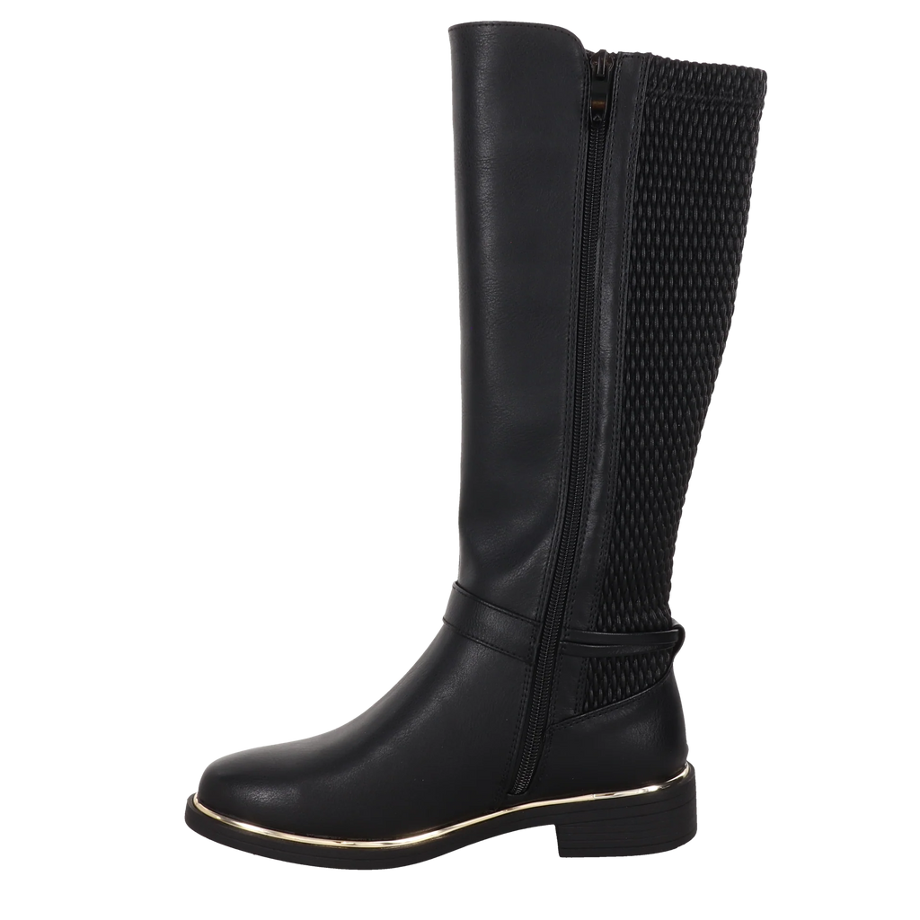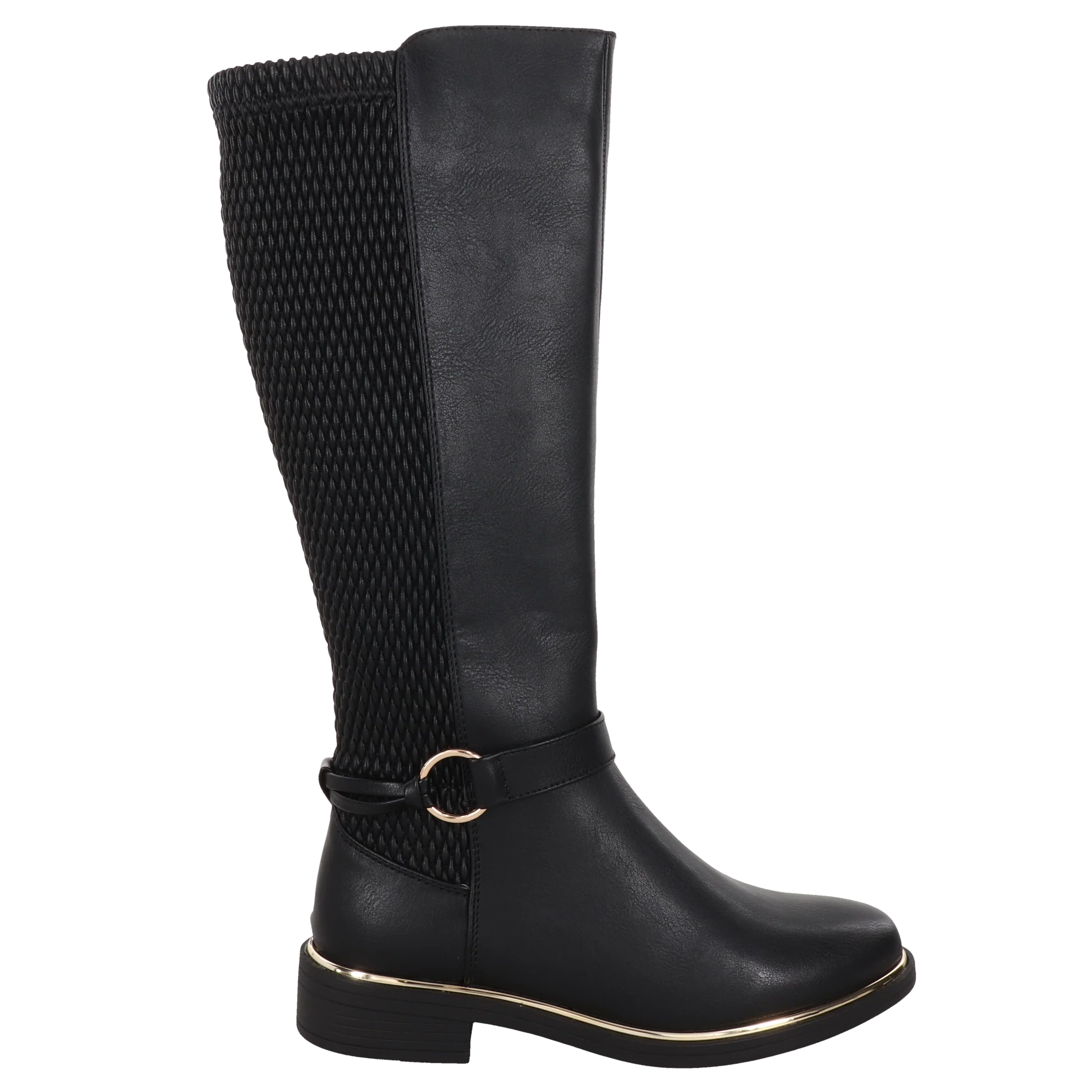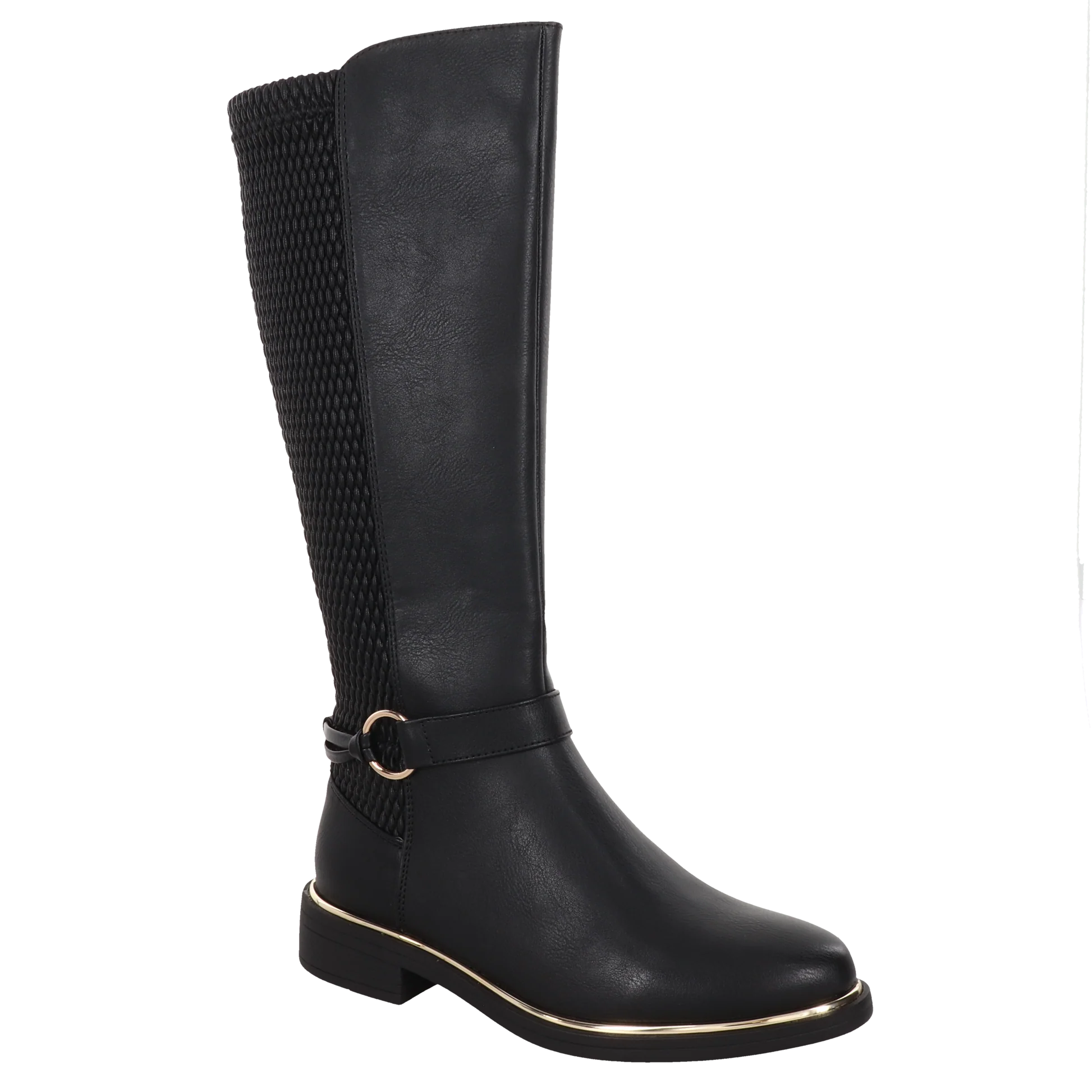 Take on cooler days in style with these women’s Taxi Morgan waterproof boots. Designed with synthetic upper, these knee-high boots feature an inside zipper with elastic gore for a secure, stay-put fit. The wrap-around ankle strap with buckle detail offers sophisticated look, while the pull tab on the shaft ensures effortless wear. These round toe boots come with lugged synthetic outsole for dependable grip.